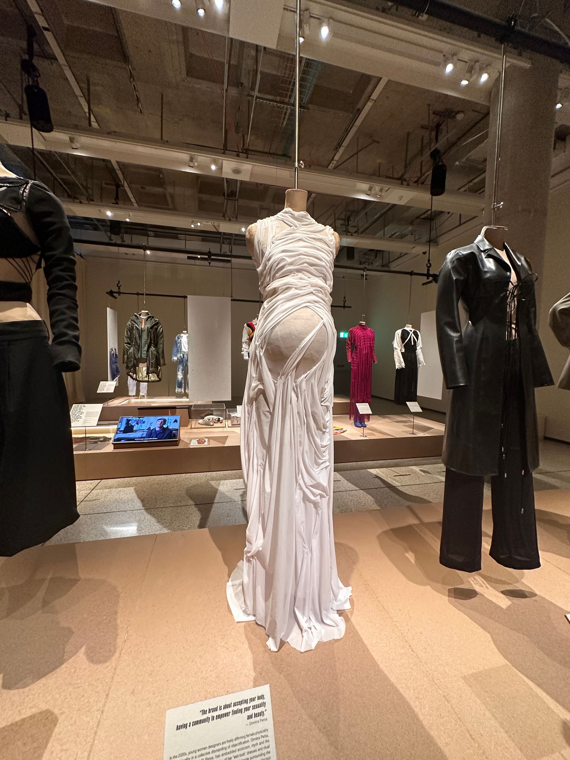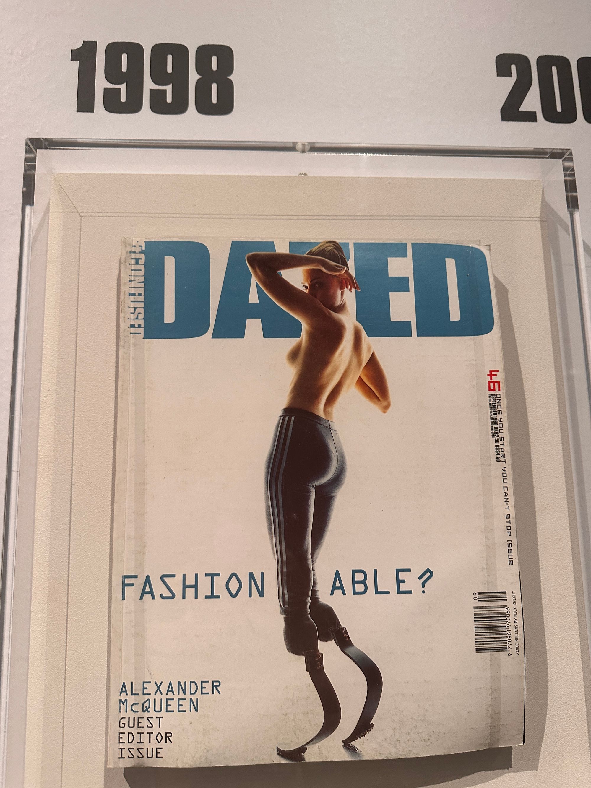 Os desafios à elasticidade dos modelos propagados pela moda tem sido capa de revista desde há largos anos. Na exposição, vemos a capa da Dazed & Confused de Setembro de 1998, com a atleta paralímpica Aimee Mullins, onde se questiona se a moda está preparada para acolher corpos diferentes entre si. No lado direito, vemos o "Wetlook pregnancy dress" da criadora Dimitra Petsa, fundadora da marca Di Petsa.